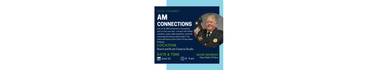Join us for AM Connections, the perfect way to start your day—connect with fellow members, enjoy a light breakfast, and build meaningful business relationships. This event will feature Clive Chief of Police Mark Rehberg.